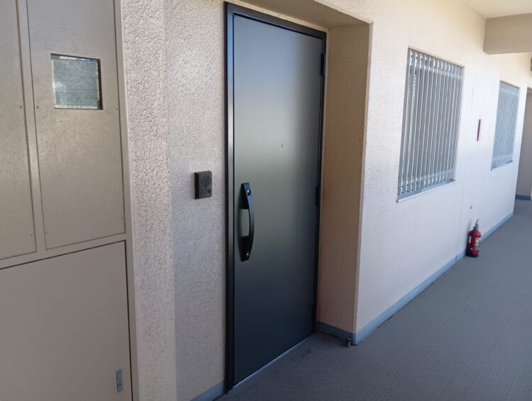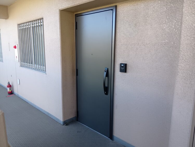 住みながら工事できるので賃貸マンションでも安心です。今回ご紹介する事例は、全30戸の賃貸マンションですべての玄関ドアを交換リフォームしました。東京都の補助金申請も代理で行ないました。