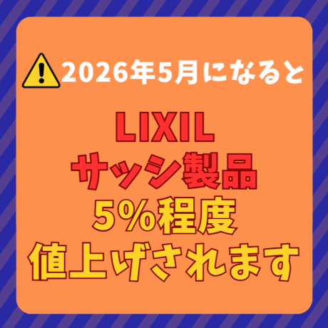 LIXILのサッシ製品は、2026年5月に定価が5%程度値上がりすることが決定しています。玄関ドアマイスターの取扱製品ではリシェントが対象です。