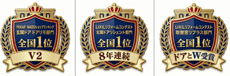 LIXIL主催コンテストで窓交換リプラス部門と玄関ドアリシェント部門で全国1位、YKKAP主催コンテストで玄関ドアドアリモ部門で全国1位の実績がございます。工事は下請け会社に任せずすべて自社で行うことにこだわり工事品質を高めてきました。合わせてご対応のホスピタリティも重視してきました。多くの皆様にご利用いただき、感謝の気持ちでいっぱいです。