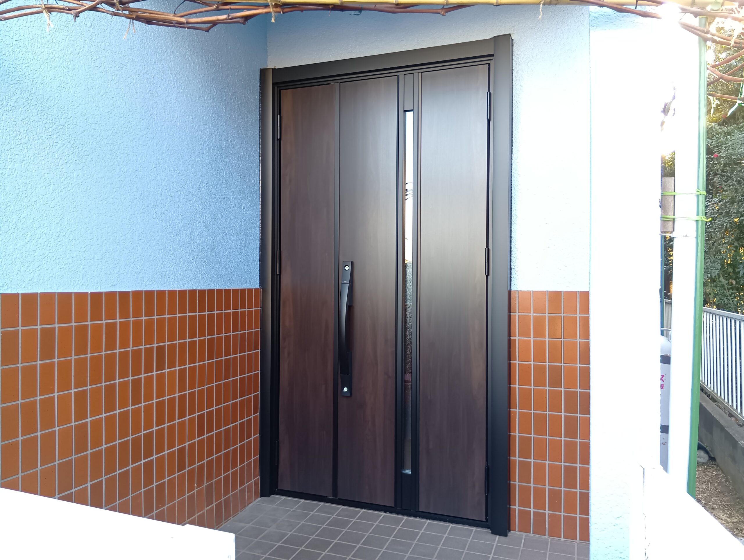 🛠️ 施工後の玄関ドア(LIXILリシェント M79型 クリエダーク 親子ドア)