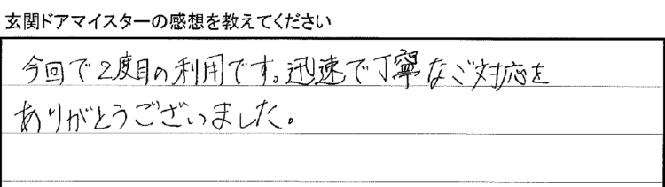 「今回で2度目の利用です。迅速で丁寧なご対応をありがとうございました。」