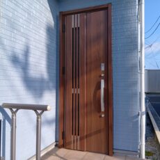 無機質なアルミドアが木目調に!温もりと高級感をプラスする玄関ドアリフォーム【埼玉県久喜市の事例】