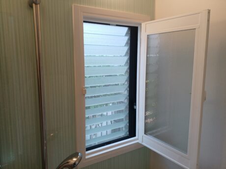 下の写真のように、内窓をつけたとしても、外のルーバー窓も開放しないと換気できない点には注意が必要です。