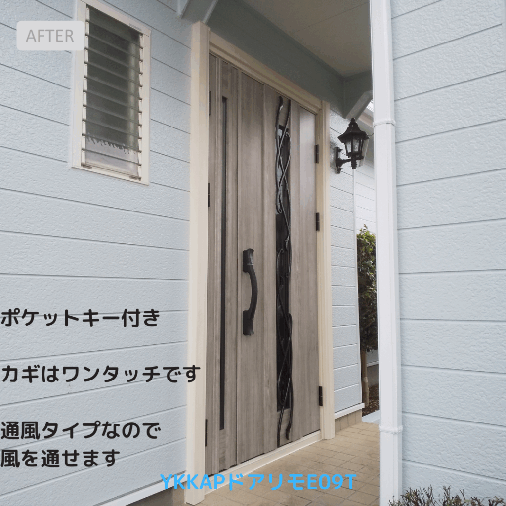 8万円安くなった事例!玄関ドアと勝手口ドアを換気が出来る断熱ドアに交換リフォーム