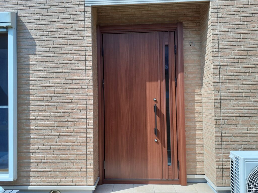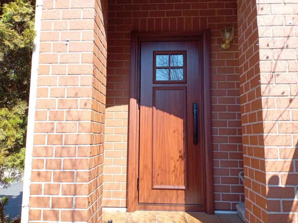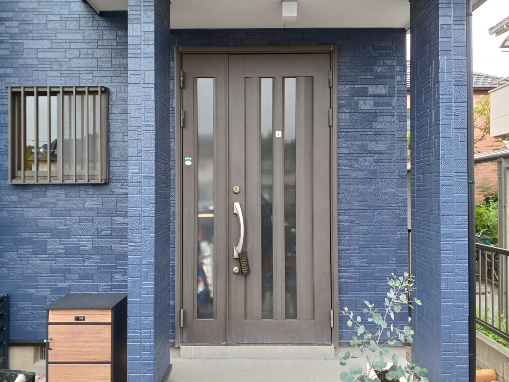 築40年の玄関ドア、両袖枠から両開きに!色選びの悩みは「実物カラーサンプル」で解決