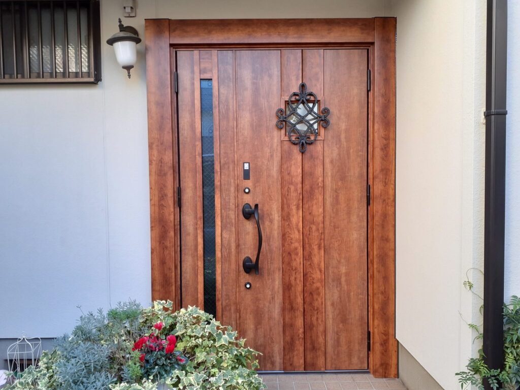 塗装が剥げた木製ドアが復活!都の助成金で叶える素敵なチーク色のリシェントにリフォーム【東京都大田区の事例】