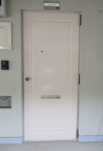 鉄のドアなので表面は冷たく結露がひどいドアでした。何度も塗装や部品の交換で使っていましたが限界が来ているお部屋が多くありました。