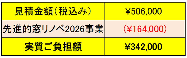 今回設置したインプラスは高い断熱基準をクリアしているため、国の補助金「先進的窓リノベ2026事業」の対象となります。