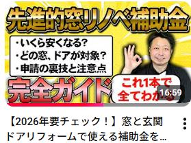 YouTubeでの情報発信 ドアと窓のリフォームに関しては「裏の裏」までお話ししています。補助金の賢い使い方なども発信していますのでぜひ参考にしてください。