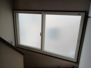 外壁塗装工事を済まされたお宅です。玄関ドアもリニューアル。断熱性能が無いアルミのドアを断熱ドアで換気もできるLIXILリシェントM83型に1日で交換しました。冷気が気になる階段の窓には内窓を設置しました。