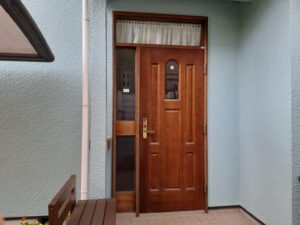 「今回玄関ドア勝手口ドアの交換をお願いしました。丁寧できれいな仕上がりに満足です。又、取り扱い説明等わかりやすく説明して頂きました。猛暑の中ほんとうにありがとうございました。」