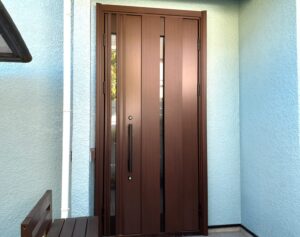 玄関ドアと勝手口ドアを同時にリフォーム。補助金は8万円出ています。窓が無くても、ドア2ヵ所あれば子育てエコホーム支援事業の対象になります。