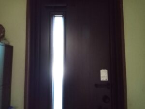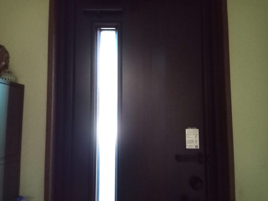 ガラスをカギの付近で小さく割れば、手を入れてカギを開けられてしまうドアでした。防犯的には最弱と言っても言い過ぎではないドアです。