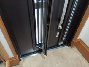寒さがダイレクトに伝わるアルミのドアを、断熱材が入っているLIXILリシェントにリフォームした事例です。しっかり断熱できるK2仕様です。タグキーで開け閉めできるFamilockもご採用いただきました。換気ができる窓が付いた採風ドアです。