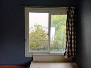 こちらのお部屋は窓が上の二つです。二つともリフォームしたので東京都の助成金対象になっています。