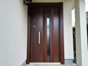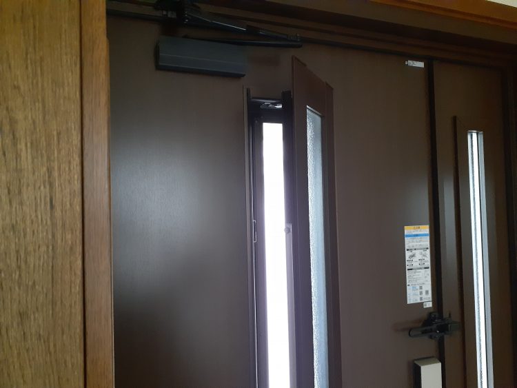 一見きれいに見える木製の玄関ドアでしたが、建付けが悪く閉まりにくくなっていました。ドアクローザーやハンドルのような金物も経年劣化で交換時期を迎えていたのでドアごとの交換をご依頼いただきました。