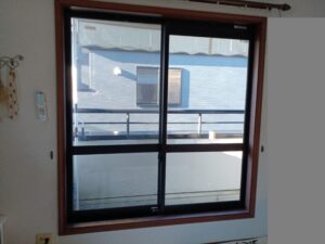LIXILリプラスで交換しています。内側は樹脂なので枠を触っても冷たくありません。外側はアルミなので、樹脂のような色あせがしにくくなっています。特にブラックの窓は樹脂窓にしてしまうと色あせが目立つので弊社ではアルミ樹脂複合窓をおすすめしています。ガラスを断熱性能が高いものにすれば、樹脂窓と断熱性能はほぼ同じになります。
