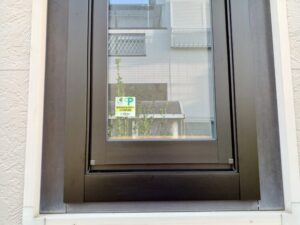 枠は外側がアルミで耐久性が高く、室内側は樹脂で断熱性が高くなっているハイブリッド窓に交換しています。ガラスは防犯タイプのLowE複層ガラスです。目立ちませんが網戸もちゃんと付いています。
