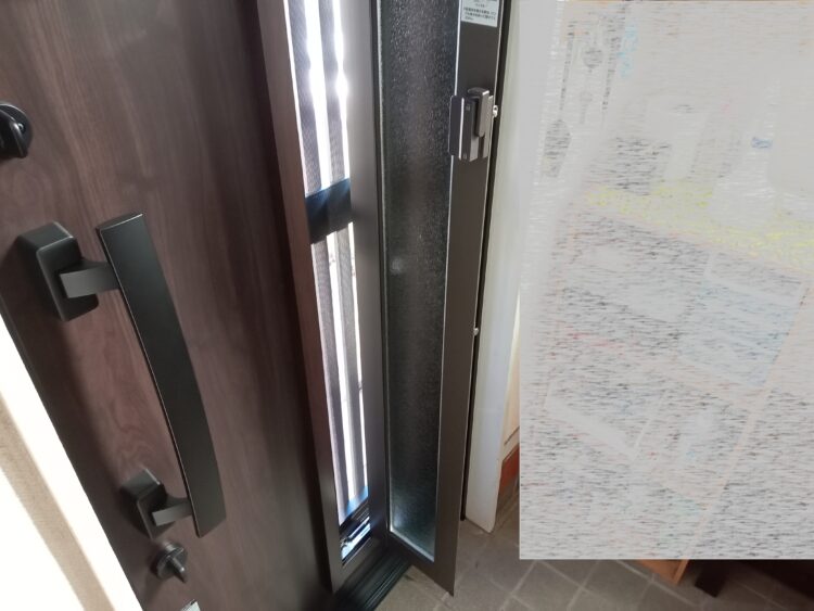 木製の玄関ドアからのリフォームです。風を通せる窓がない玄関なので、採風タイプのドアでリフォームします。