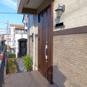 外壁塗装の後に玄関ドアの古さが目立ってしまうことはよくあるケースなんです。やはり玄関ドアはおうちの顔なんで、ドアまでリフォームしたほうが断然素敵なおうちに感じますよ。