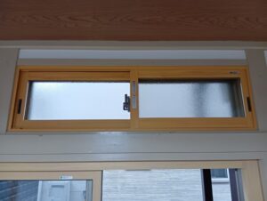 内側の樹脂部分は、クリエペールというカラーです。外側はシャイングレーです。ランマはコスパから内窓を取り付けています。