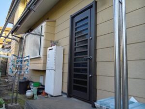 古い勝手口は泥棒に狙われやすい弱点でしたが、新しいLIXILリシェントJA型(オータムブラウン)で徹底的に防犯性を高めました。